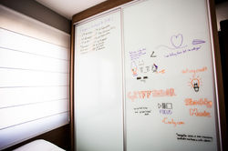 Juntei os pedidos escolhendo a configuração que melhor atende todos eles e usando cores neutras no mobiliário fixo, assim não tem perigo de enjoar. Antes de iniciar o projeto, encontrei um quarto cheio de posters nas paredes. Previ espaço pra eles de maneira que possam ser trocados. Hoje são do Harry Potter, amanhã a gente nunca sabe o que vai se passar na cabeça (e no ❤) de uma adolescente.